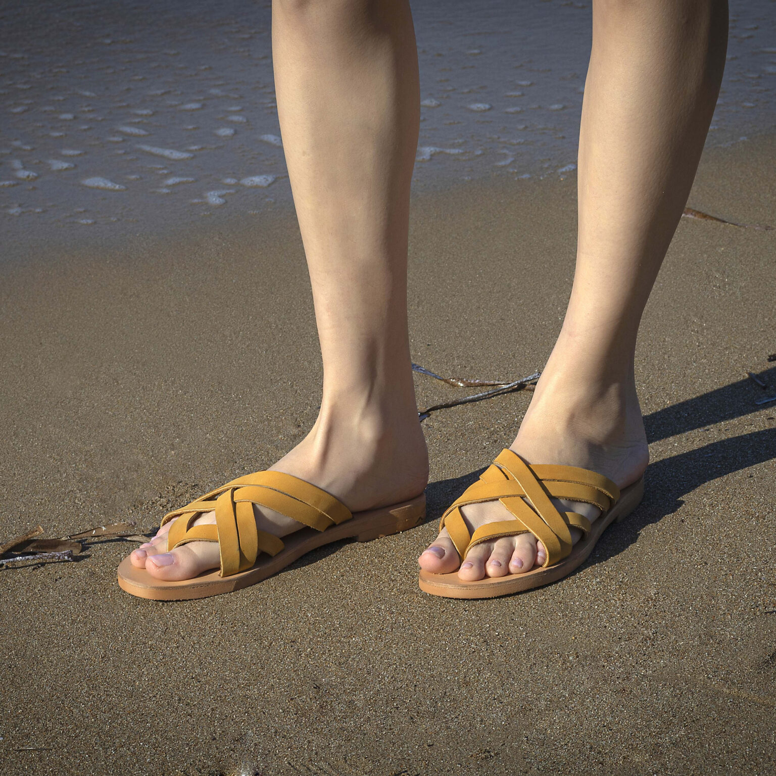 All sandals are handmade in Greece in our Workshop using a range of fine genuine leather. The top is made from natural vegetable-tanned vachetta leather. This type of leather is untreated and darkens with age and sunlight creating a patina. These subtle variations in shading and texture over time add to the sandals unique identity and beauty.