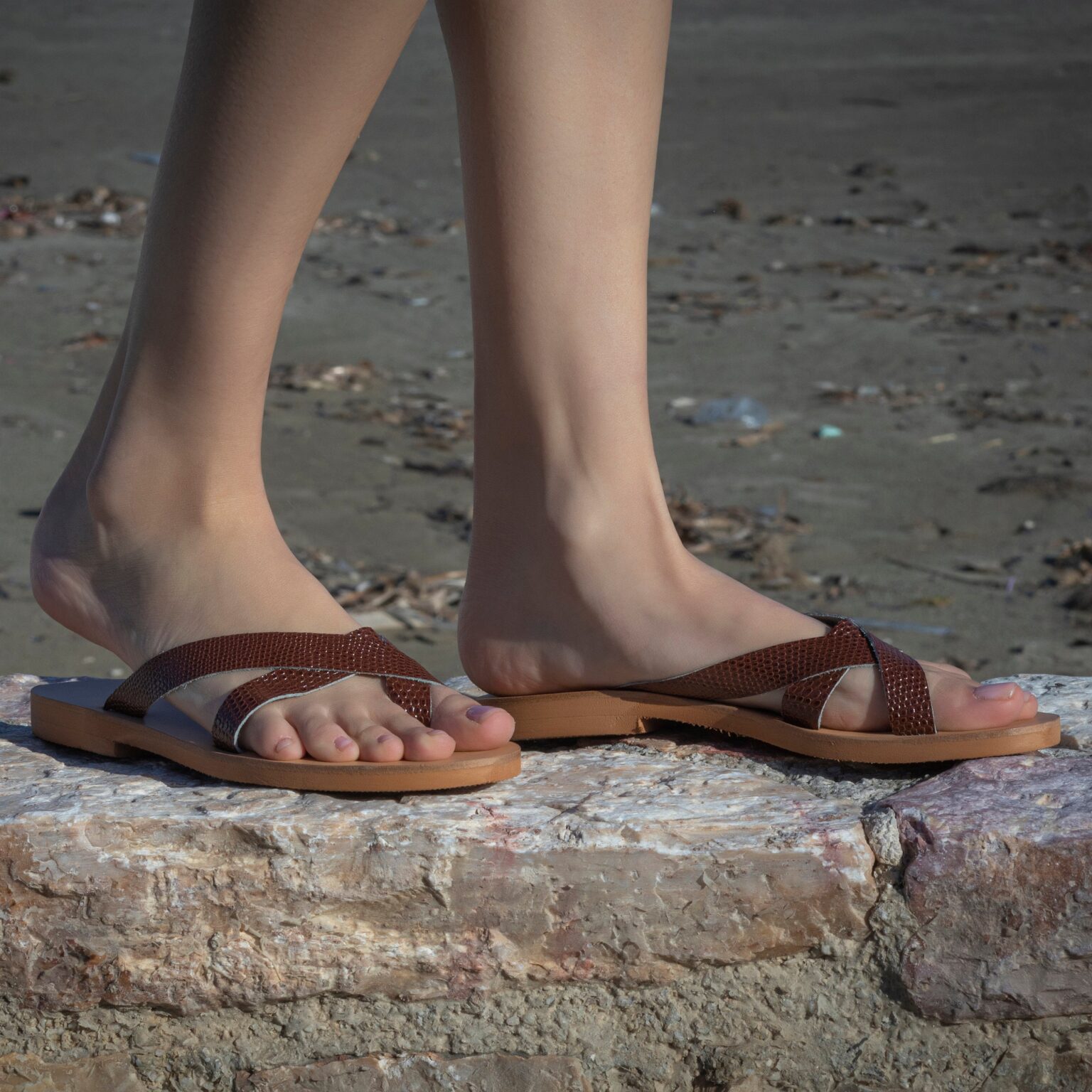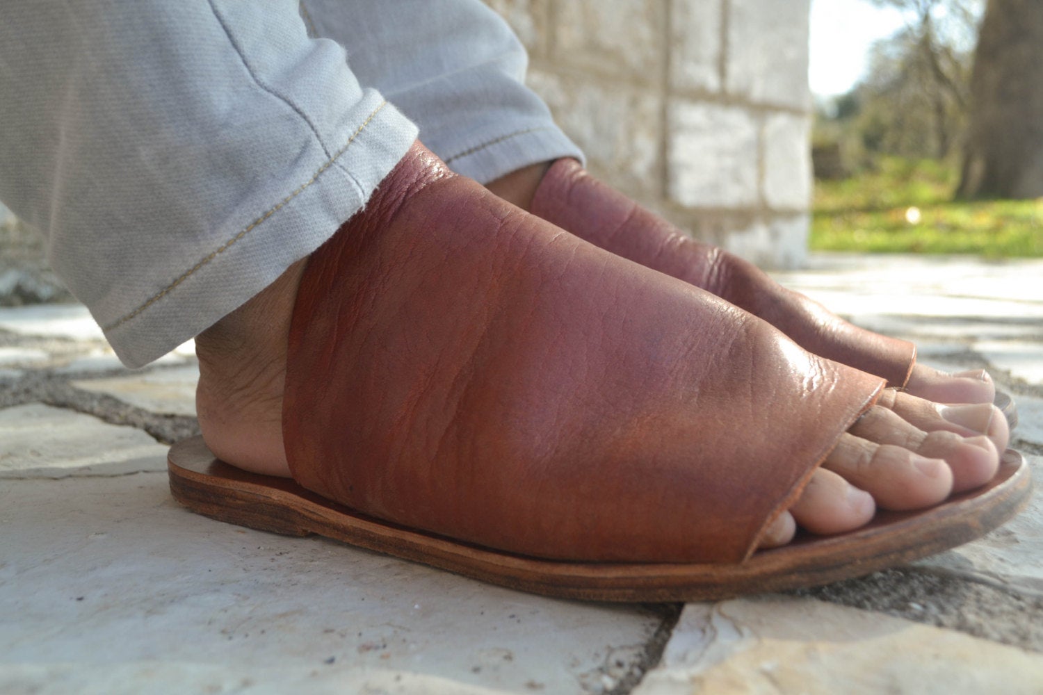 All sandals are handmade in Greece in our Workshop using a range of fine genuine leather. The top is made from natural vegetable-tanned vachetta leather. This type of leather is untreated and darkens with age and sunlight creating a patina. These subtle variations in shading and texture over time add to the sandals unique identity and beauty.